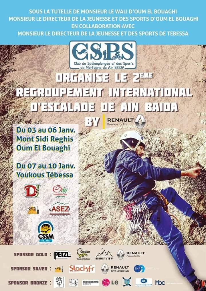 Aïn Beïda : Carrefour de l’Escalade Méditerranéenne Le CSPS récidive avec une 2ᵉ édition internationale sur deux sites emblématiques de l’Est algérien Du 3 au 10 janvier 2019, la wilaya