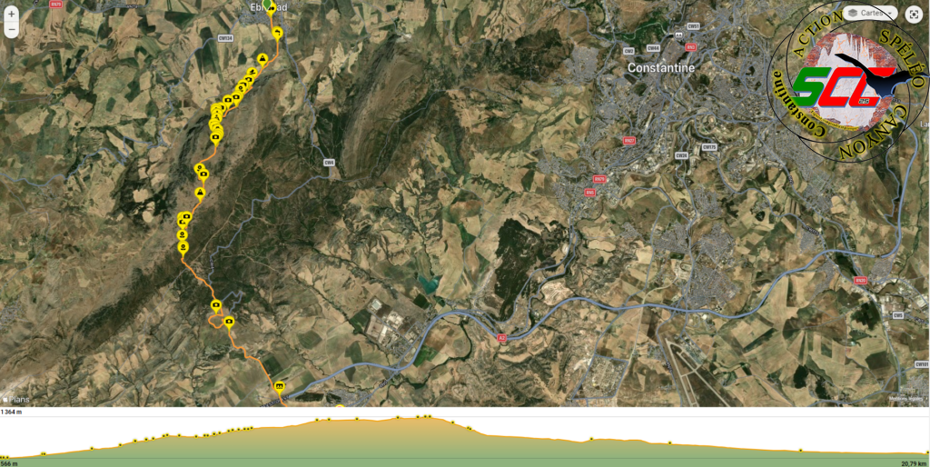 Lors de notre excursion, qui s’est déroulée le 2 juin 2023, nous étions un groupe de deux personnes. Djeghim Chaouki, membre du « Spéléo club de Constantine », et Seddik Bouhbila, de l’association « Yes we can travel – Randonnée Escalade Camping ». Notre objectif était de concrétiser un nouvel itinéraire de randonnée sur le terrain réel à Constantine.
